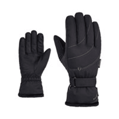 The KAHLI-Z PR® Women's Glove by ZIENER is an elegant and ultra-soft ski glove that delivers exceptional warmth and comfort. Featuring the revolutionary PrimaLoft® CROSS CORE™ insulation, it offers outstanding thermal performance at minimal weight. The visible plush cuff and refined detailing add a feminine touch, both on and off the slopes. Water- and wind-repellent properties keep hands pleasantly warm in cold conditions. An adjustable strap closure ensures a perfect fit at the wrist. PFAS-free and made with recycled materials.
