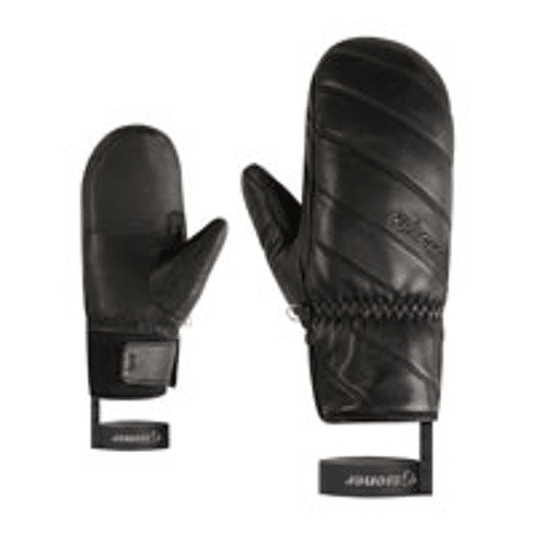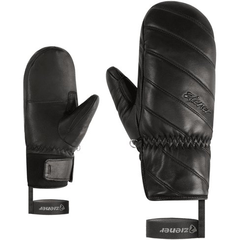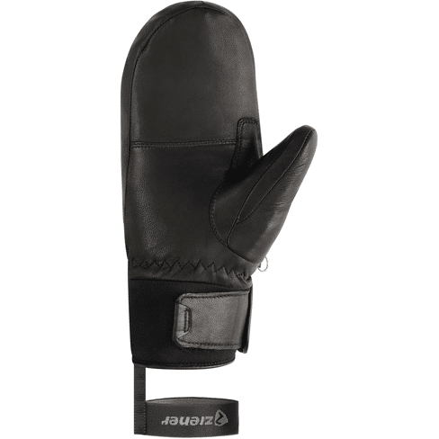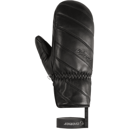 The KANNI-Z AS® PR Women's Mitten by ZIENER is a sporty and warm ski mitten crafted from premium lamb leather, offering flexibility and comfort on cold days. PrimaLoft® Gold insulation delivers outstanding warmth even in freezing conditions, while the integrated 5-finger fleece lining ensures a soft, tactile feel on ski poles. The waterproof and windproof ZIENER AQUASHIELD® membrane maintains a dry and comfortable climate inside the glove. The soft leather palm is both durable and supple. A hook-and-loop closure on the inside of the cuff and a practical leash keep the mitten securely in place. PFAS-free and made with recycled materials.