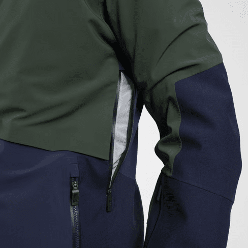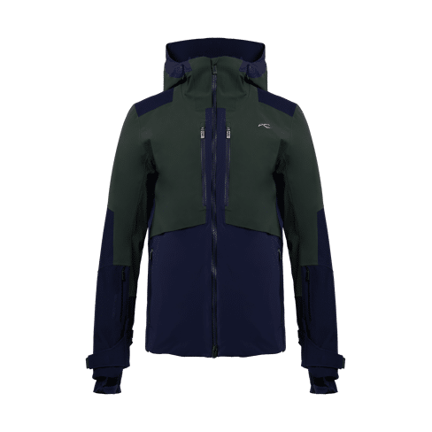 - Kenmerken: Helm-compatibele vaste capuchon, Advanced Ventilation System met KJUS AC-Vent™, verwijderbare verstelbare sneeuwvanger, VaporTemp nekbeschermer, graphene-uitgevoerd telefoonzakje, ruime borst- en handzakken, reactieve klimaatregeling