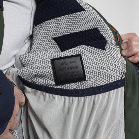 - Eigenschappen: Duurzame HexAir-stof, 4-way stretch, ademend, waterdicht, milieuvriendelijk, VaporTemp, graphene, Hydraulic wicking, PFC-vrije DWR-behandeling
